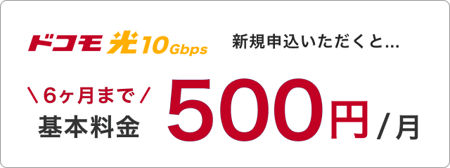 ドコモ光 10ギガ基本料金最大 6 か月間ワンコインキャンペーン